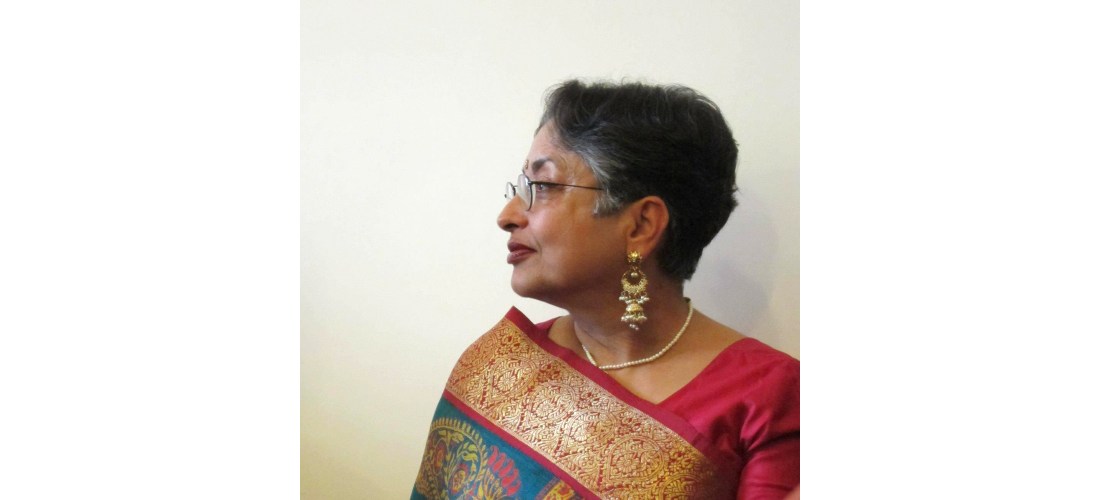I am fortunate to have been born in India, into a culture with a keen aesthetic sense and a sensitivity to the spiritual essence of people and things. The Indian love of ornamentation is seen in the most everyday and utilitarian objects – in the clay pot for drawing water from the well, in the designs painted around the doorways and thresholds of village homes. I hope these traits are evident in my paintings. And I love vivid colors, found in the foods, the flowers, the household objects, the fabrics, the jewelry of India.
